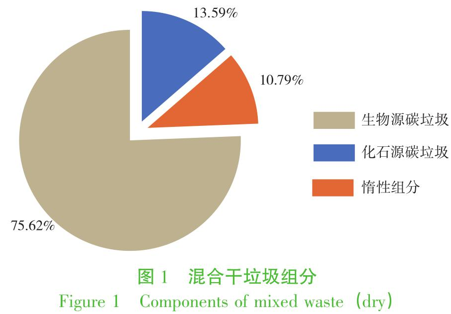 平衡法已被納入ISO 18466:2016,并被聯(lián)合國氣候變化框架公約(United Nations Framework Convention on Climate Change, UNFCCC)更新至CDM方法學中用于計算垃圾組分中生物源碳和化石源碳的比例。平衡法將混合垃圾分為惰性組分、生物源碳類型垃圾、化石源碳類型垃圾和水等4個組分,通過計算5個質(zhì)量平衡方程和1個能量平衡方程即可在線分析垃圾組分,方法所需數(shù)據(jù)可以從相關文獻或從垃圾熱解氣化焚燒發(fā)電廠常規(guī)測量的運行數(shù)據(jù)中獲得,無須對垃圾進行額外的采樣分析。平衡法不僅可以用于計算垃圾熱解氣化焚燒廠的總碳排放量,還可以對各組分的排放比例進行分析。