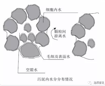 污水廠內(nèi)的污泥是從污水中來的,因此在污泥中必然存在大量的水分。我們來看下面這張圖,