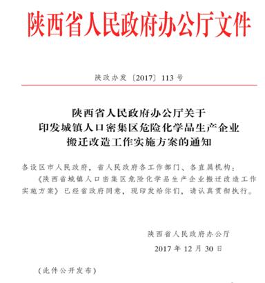 陜西省城鎮(zhèn)人口密集區(qū)危險化學(xué)品生產(chǎn)企業(yè)搬遷改造工作實施方案