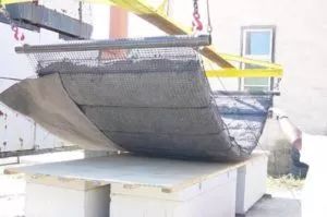 對于活性炭這類沉降性能較差的材料而言,是需要進(jìn)行預(yù)濕處理以去除材料內(nèi)空氣來幫助減少其水中浮力的。在施工過程中,如果采用此類沉降性能較差的材料,或是遇到水體流速較快不利于施工的情況,可以考慮使用水下擴(kuò)散器,蛤形或其他抓斗將覆蓋材料帶入水下釋放,幫助其更好的完成覆蓋。另外,使用土工織物包裹AquaGate一類的復(fù)合材料或其他活性復(fù)合材料進(jìn)行覆蓋,亦可以增加施工的可操作性。一般情況下,這種土工織物是通過機械設(shè)備或潛水員進(jìn)行水下覆蓋的。這類包裹著活性覆蓋材料的土工織物,例如ReactiveCoreMat材料,在通常情況下覆蓋材料容量較小,厚度也較薄。但如工程需要,也可以通過使用更厚的石龍材料以增大土工織物的覆蓋材料容量,例如:MarineMattress材料便是使用了這一技術(shù)。另外,鉸接式砌塊或其他防護(hù)墊,均可用來放置或包裹覆蓋材料。
