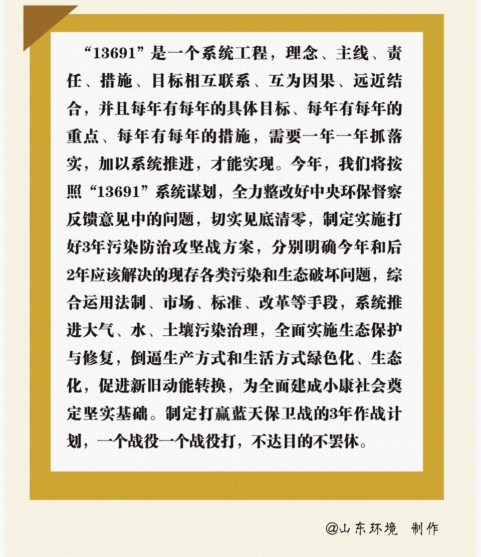 前言:2018年,山東省將按照“13691”系統(tǒng)謀劃,全力改好中央環(huán)保督察反饋意見中的問題,切實(shí)見底清零,制定實(shí)施打好3年污染防治攻堅(jiān)站方案,分別明確今年和后2年應(yīng)該解決的現(xiàn)存各類污染和生態(tài)破壞問題,綜合運(yùn)用法治、市場(chǎng)、標(biāo)準(zhǔn)、改革等手段,系統(tǒng)推進(jìn)大氣、水、土壤污染治理,全面實(shí)施生態(tài)保護(hù)和修復(fù),倒逼生產(chǎn)方式和生活方式綠色化、生態(tài)化,促進(jìn)新舊功能動(dòng)能轉(zhuǎn)換,為全面建成小康社會(huì)奠定堅(jiān)實(shí)基礎(chǔ)。制定打贏藍(lán)天保衛(wèi)戰(zhàn)的3年作戰(zhàn)計(jì)劃,一個(gè)戰(zhàn)役一個(gè)戰(zhàn)役打,不達(dá)目的不罷休。