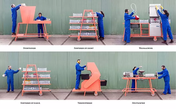 Bureau SLA 和Overtreders W 是兩家總部位于阿姆斯特丹的設(shè)計(jì)公司,它們正在把塑料垃圾轉(zhuǎn)變?yōu)閸湫碌慕ㄖ牧稀!爸腔鄣牡图夹g(shù)等同于嶄新的高技術(shù)”正是他們的設(shè)計(jì)理念。 “美麗塑料車間項(xiàng)目”是獨(dú)一無(wú)二的創(chuàng)新項(xiàng)目,由建筑師和設(shè)計(jì)師合作,把塑料垃圾制作成可用的建筑外立面材料。這一創(chuàng)新團(tuán)隊(duì)認(rèn)為世上不存在廢物,除了制造時(shí)被賦予的功能,任何物品都有更多的功能,塑料尤其如此。