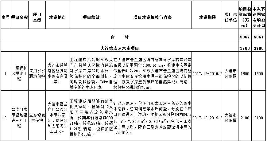 一、項目主要內(nèi)容:本次安排全部為中央資金,共投資5067萬元,其中碧流河水庫3700萬元,安排2個項目,水豐湖1367萬元,安排4個項目。