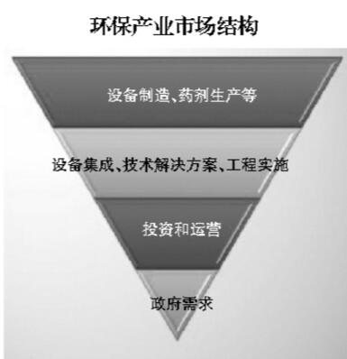 第一,以政府需求為主的市場(chǎng)結(jié)構(gòu)呈現(xiàn)倒三角形。倒三角形最上層是數(shù)量眾多且以民營(yíng)企業(yè)為主的設(shè)備制造、藥劑生產(chǎn)等上游環(huán)節(jié);中間層是數(shù)量中等,也以民營(yíng)企業(yè)為主的設(shè)備集成、技術(shù)解決方案、工程實(shí)施等中游環(huán)節(jié);最底層是數(shù)量最少以國(guó)有企業(yè)為主、從事投資和運(yùn)營(yíng)業(yè)務(wù)的下游環(huán)節(jié)。這一倒三角市場(chǎng)結(jié)構(gòu)的支點(diǎn)是政府環(huán)境治理需求,這樣的市場(chǎng)結(jié)構(gòu)往往經(jīng)不起“風(fēng)吹草動(dòng)”。只有政府需求端變寬一點(diǎn),比如出現(xiàn)深度處理需求,才能促使企業(yè)形成差異化格局,衍生出不同發(fā)展路徑。