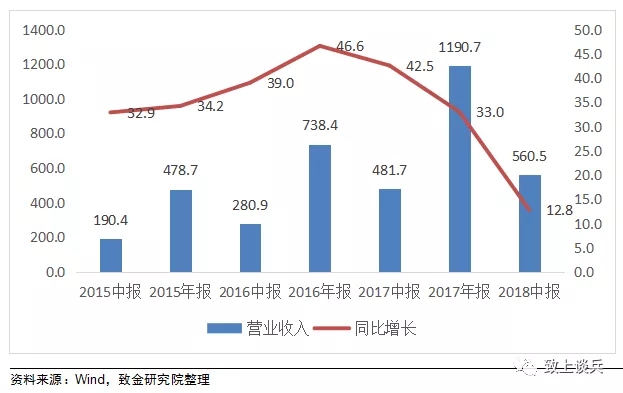 致金研究院選取總計(jì)41家滬深兩市環(huán)保板塊上市公司,2018年上半年實(shí)現(xiàn)營業(yè)總收入560億元,同比增長12.8%,實(shí)現(xiàn)扣非歸母凈利潤66億元,同比增長6%。整體而言18年上半年環(huán)保板塊增速下降明顯,但仍保持增長態(tài)勢(shì)。