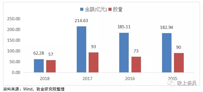 圖表:2015年1月至2018年10月退出金額與案例數(shù)