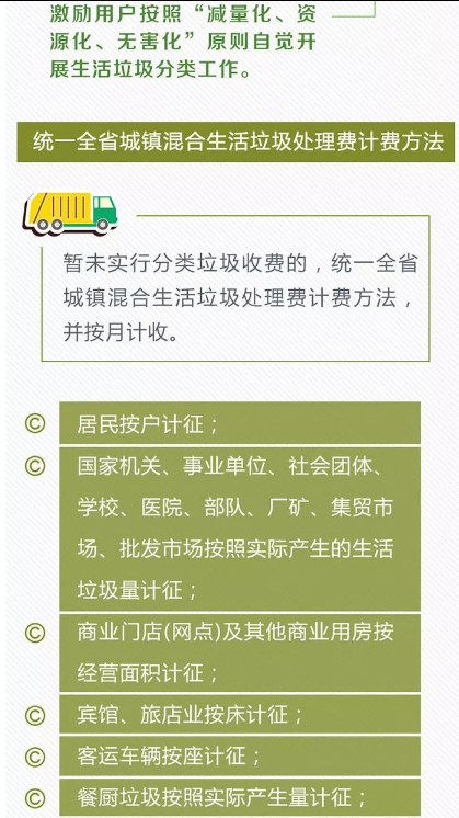 到2020年底前各市、縣(市、區(qū))要全面建立,覆蓋到所有建制鎮(zhèn)的生活垃圾處理收費制度,按照《通知》,對非居民用戶和具備條件的居民用戶實行分類垃圾與混合垃圾差別化收費政策,激勵用戶按照“減量化、資源化、無害化”原則,自覺開展生活垃圾分類工作,促進(jìn)垃圾源頭減量,推動可再生資源回收利用。