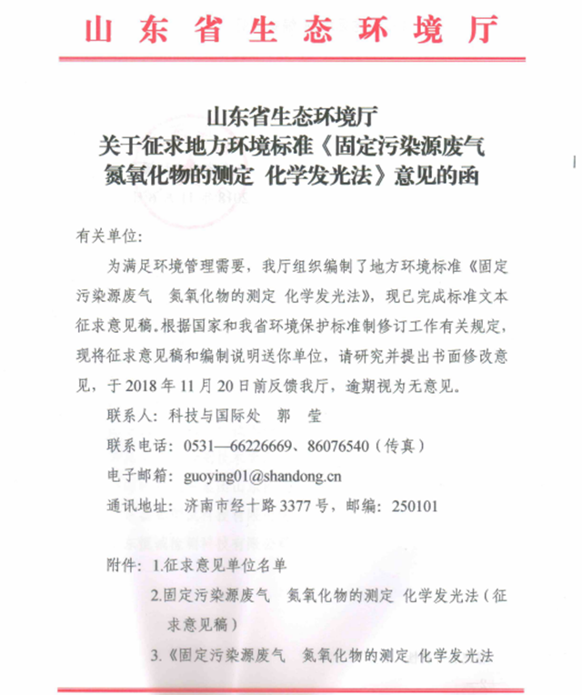 原標題:關于征求地方環(huán)境標準《固定污染源廢氣氮氧化物的測定 化學發(fā)光法》意見的函