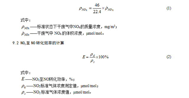 氮氧化物(NOx)濃度等于一氧化氮(NO)與二氧化氮(NO2)轉(zhuǎn)化得到的NO濃度之和。按下式計算標準狀態(tài)(273 K, 101.325 kPa)下廢氣中的NOx質(zhì)量濃度,結(jié)果以NO2計: