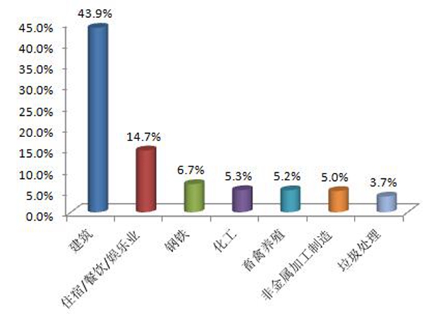 從行業(yè)類型來看,本月公眾反映最集中的行業(yè)是建筑業(yè),占43.9%,其次為住宿餐飲娛樂業(yè),占14.7%,主要反映問題包括:夜間施工噪聲、施工粉塵、餐飲油煙、生活?yuàn)蕵吩肼曃廴镜取?/div>