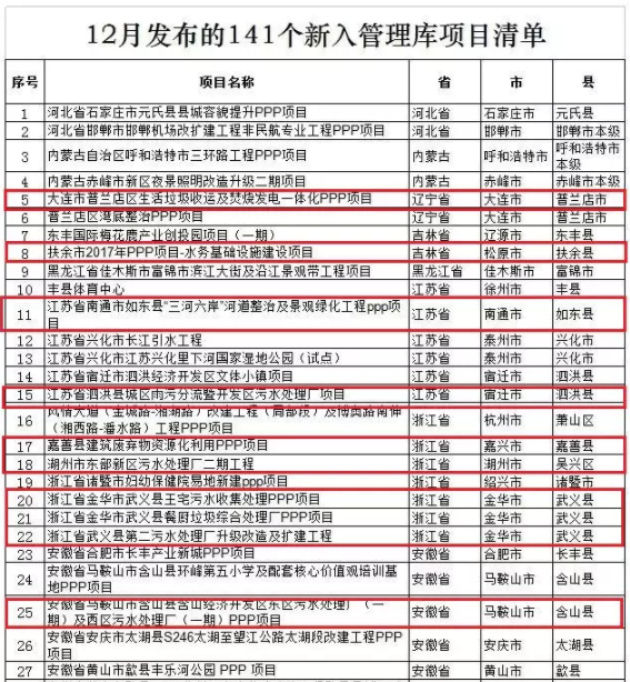 財政部PPP中心發(fā)布2018年12月141個新入管理庫項目清單,涉及近70個環(huán)保項目。這些都是誰家的項目呢?歡迎留言告訴我們,清單詳情如下:相關(guān)閱讀:薛濤:什么才是真PPP?薛濤:如何做好PPP?