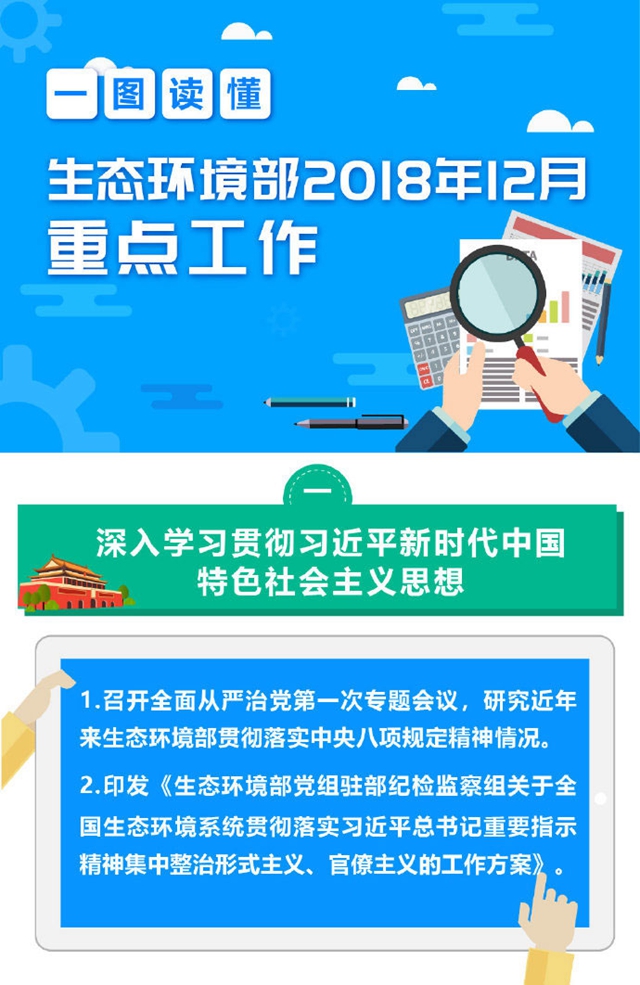 2018年12月,生態(tài)環(huán)境部重點工作是什么?近日,生態(tài)環(huán)境部微博以圖文形式向社會公開劃重點。例如:召開全面從嚴治黨第一次專題會議,研究近年來生態(tài)環(huán)境部貫徹落實中央八項規(guī)定精神情況;持續(xù)推進全國集中式飲用水水源地環(huán)境整治;印發(fā)《生態(tài)環(huán)境損害鑒定評估技術指南土壤與地下水》《汾渭平原、長三角地區(qū)城市環(huán)境空...