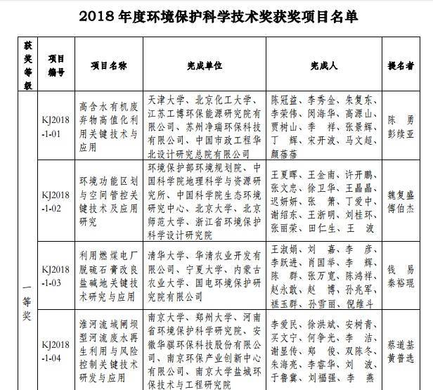 根據(jù)《環(huán)境保護(hù)科學(xué)技術(shù)獎(jiǎng)勵(lì)辦法》的規(guī)定,經(jīng)有關(guān)專(zhuān)家、單位提名和專(zhuān)家評(píng)審,并通過(guò)廣泛公示,環(huán)境保護(hù)科學(xué)技術(shù)獎(jiǎng)勵(lì)委員會(huì)批準(zhǔn)37個(gè)環(huán)保項(xiàng)目獲2018年度環(huán)境保護(hù)科學(xué)技術(shù)獎(jiǎng),其中:一等獎(jiǎng)6項(xiàng),二等獎(jiǎng)29項(xiàng),科普類(lèi)獎(jiǎng)2項(xiàng)。附:2018年度環(huán)境保護(hù)科學(xué)技術(shù)獎(jiǎng)獲獎(jiǎng)項(xiàng)目名單環(huán)境保護(hù)科學(xué)技術(shù)獎(jiǎng)勵(lì)辦公室2019年1月9...