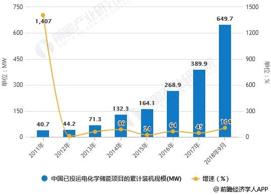 2018年,我國電化學儲能出現爆發(fā)式增長,其中電網側儲能新增裝機比重更是首次超過用戶側,躍居第一位,占比達到42%。在地方層面,江蘇、河南、湖南等地陸續(xù)開展了百兆瓦級別的電網側儲能項目建設。 從總體看,我國電化學儲能市場在近年呈現逐步上升的趨勢。2011——2017年,我國電...