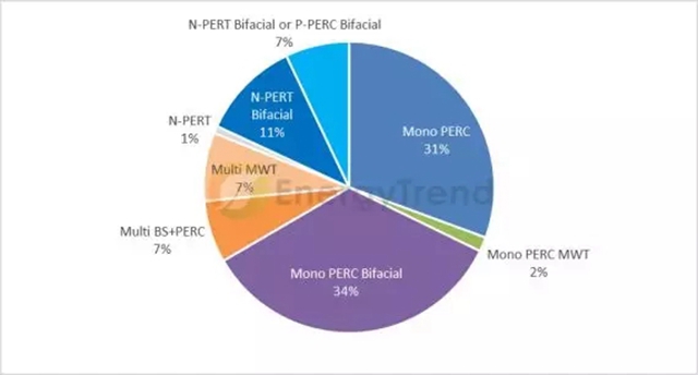 不同于傳統(tǒng)的光伏組件只能利用正面入射的光照,雙面組件的背面也具備光電轉(zhuǎn)化的能力,功率/發(fā)電量增益顯著,且能夠多項(xiàng)技術(shù)疊加使用,度電成本降幅貢獻(xiàn)最高可達(dá)18%。隨著制作工藝的日趨成熟以及對(duì)應(yīng)成本的下降,雙面組件已經(jīng)進(jìn)入規(guī)模化生產(chǎn)階段。集邦咨詢旗下新能源研究中心EnergyTrend 先進(jìn)技術(shù)報(bào)告數(shù)據(jù)顯...