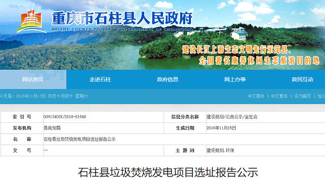 【中國環(huán)保在線 地方新聞】根據(jù)《重慶市生活垃圾焚燒發(fā)電規(guī)劃(2015-2020年)》,提出建設(shè)豐都—石柱垃圾焚燒發(fā)電廠,由于規(guī)劃選址布局調(diào)整,增加石柱縣生活垃圾焚燒發(fā)電廠的規(guī)劃選址,輻射范圍包括豐都縣、石柱縣。 公示項(xiàng)目:石柱縣垃圾焚燒發(fā)電項(xiàng)目選址報(bào)告 公示內(nèi)容: 根據(jù)《重慶市生活垃圾焚...