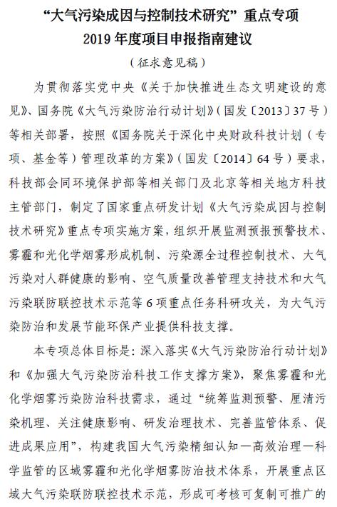 日前,科技部社會發(fā)展科技司發(fā)布了《關(guān)于國家重點(diǎn)研發(fā)計(jì)劃“大氣污染成因與控制技術(shù)研究”等6個重點(diǎn)專項(xiàng)2019年度項(xiàng)目申報(bào)指南征求意見的通知》,涉及“大氣污染成因與控制技術(shù)研究”、“典型脆弱生態(tài)修復(fù)與保護(hù)研究”、“水資源高效開發(fā)利用”等環(huán)保相關(guān)重點(diǎn)專項(xiàng),詳情如下:關(guān)于國家重點(diǎn)研發(fā)計(jì)劃“大氣污染成因與控制...