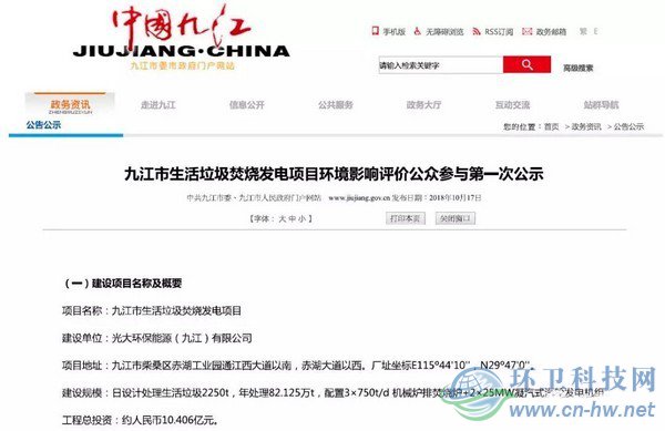 2018年10月17日,九江市政府網(wǎng)發(fā)布。在此之前,柴桑區(qū)政府網(wǎng)站分別于2017年11月22日()和2018年7月31日()發(fā)布兩次《九江市生活垃圾發(fā)電項(xiàng)目環(huán)境影響評價公眾參與第一次公示》。此第三次公示更改建設(shè)地址E115º42.48'、N29º45.06'到新位置E115&or...