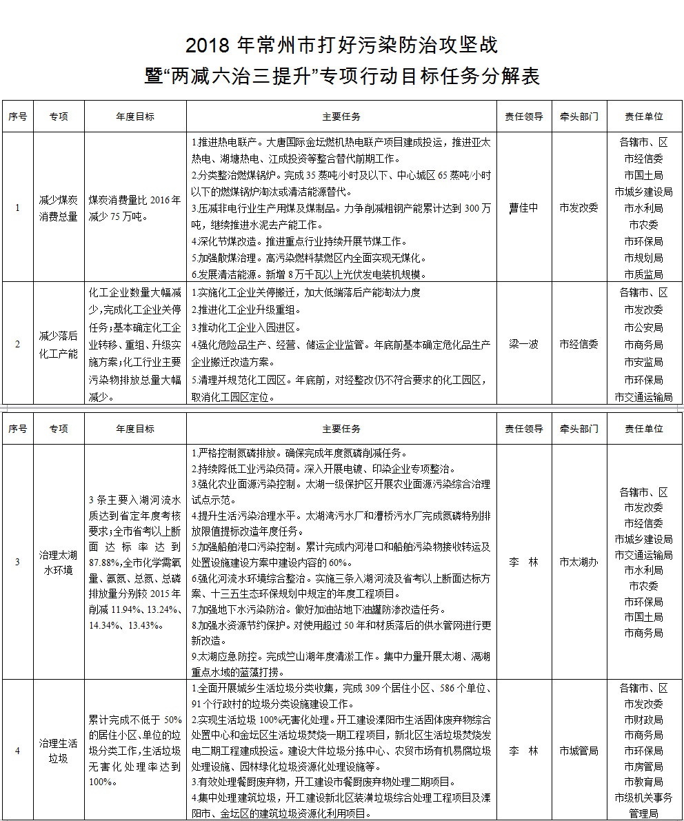 《2018年市打好攻堅戰(zhàn)暨“兩減六治三提升”專項行動工作方案》于日前印發(fā),根據(jù)方案,2018年,市區(qū)PM2.5年均濃度降到47微克/立方米,空氣質(zhì)量優(yōu)良天數(shù)比例達到69.7%。省考斷面水質(zhì)優(yōu)Ⅲ類比例達到42.4%以上,無劣Ⅴ類斷面。全市土壤總體保持穩(wěn)定,保障農(nóng)用地和建設用地土壤環(huán)境安全。全市二氧化硫...
