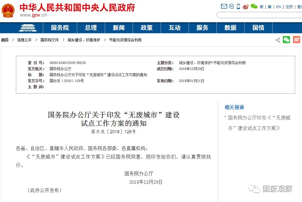 近日國務(wù)院辦公廳印發(fā)“無廢城市”建設(shè)試點工作方案的通知,“無廢城市”是以創(chuàng)新、協(xié)調(diào)、綠色、開放、共享的新發(fā)展理念為引領(lǐng),通過推動形成綠色發(fā)展方式和生活方式,持續(xù)推進(jìn)固體廢物源頭減量和資源化利用,最大限度減少填埋量,將固體廢物環(huán)境影響降至最低的城市發(fā)展模式,也是一種先進(jìn)的城市管理理念。開展“無廢城市”...