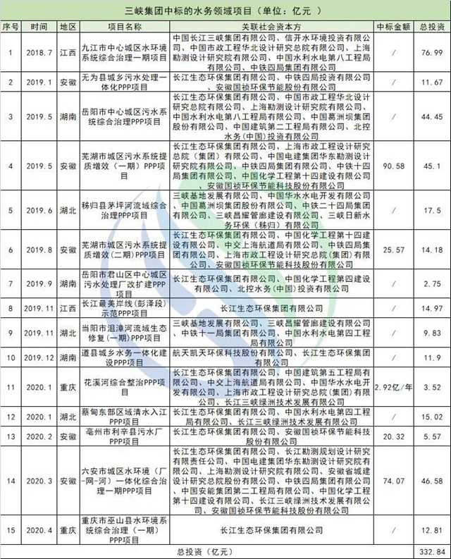 從2018年年初宣布進(jìn)軍環(huán)保,到現(xiàn)在手握幾百億環(huán)保訂單、重金狂攬多家上市公司股權(quán),三峽集團(tuán)獨(dú)樹一幟,通過特有模式,將水環(huán)境綜合治理帶到了一個(gè)前所未有的高度、深度、廣度和速度。長江大保護(hù)任務(wù)下,從初露端倪到高位引領(lǐng),三峽集團(tuán)都干了什么? 從近期的項(xiàng)目信息和企業(yè)動(dòng)態(tài)可以看出,近日以來,中國長江三峽集團(tuán)有...