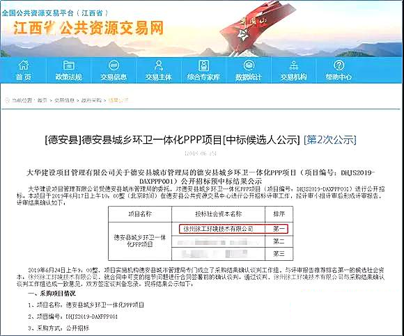 日前,徐工環(huán)境成功中標(biāo)江西省德安縣城鄉(xiāng)環(huán)衛(wèi)一體化PPP項目,合同總額為7.38億元。該項目是徐工環(huán)境在江西市場第一個落地的環(huán)衛(wèi)PPP項目,也是目前江西省合同總額最高的環(huán)衛(wèi)PPP項目,同時標(biāo)志著徐工環(huán)衛(wèi)運營項目累計合同額即將突破100億元。經(jīng)過緊張有序地投標(biāo)、專業(yè)評審組的逐級評審,徐工環(huán)境憑借過硬的產(chǎn)...