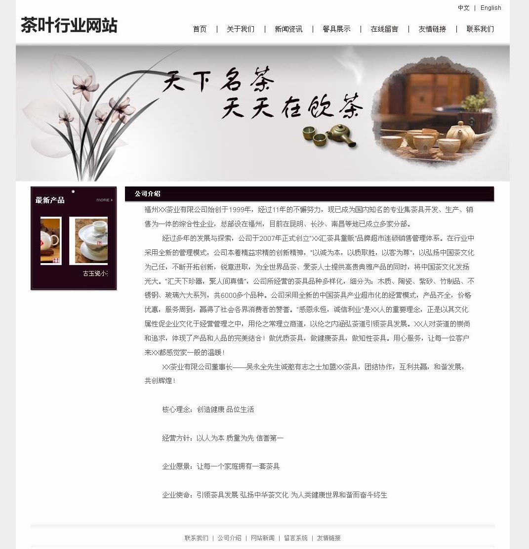 經 過多年的發(fā)展與探索,公司于2007年正式創(chuàng)立“XX匯茶具量販”品牌超市連鎖銷售管理體系。在行業(yè)中采用全新的管理模式,公司本著精益求精的創(chuàng)新精神, “以誠為本,以質取勝,以客為尊”,以弘揚中國茶文化為己任,不斷開拓創(chuàng)新,銳意進取,為全世界品茶、愛茶人士提供高貴典雅產品的同時,將中國茶文化發(fā)揚 光大。“匯天下珍器,聚人間真情”,公司所經營的茶具品種多樣化,細分為:木質、陶瓷、紫砂、竹制品、不銹鋼、玻璃六大系列,共6000多個品種。公司采 用全新的中國茶具產業(yè)超市化的經營模式,產品齊全,價格優(yōu)惠,服務周到,贏得了社會各界消費者的贊譽。“感恩永恒,誠信利業(yè)”是XX人的重要理念,正是以 其文化屬性促企業(yè)文化于經營管理之中,用倫之常理立商道,以倫之內涵弘茶道引領茶具發(fā)展。XX人對茶道的崇尚和追求,體現了產品和人品的完美結合!做優(yōu)質 茶具,做健康茶具,做知性茶具。用心服務,讓每一位客戶來XX都感覺家一般的溫暖!
