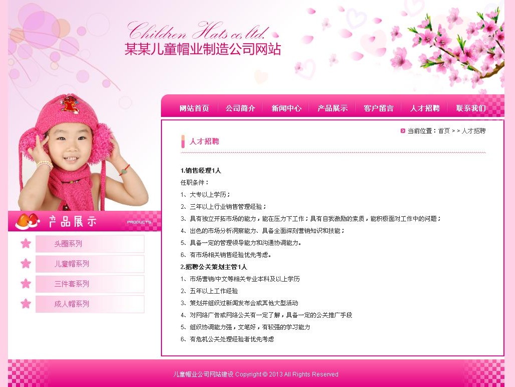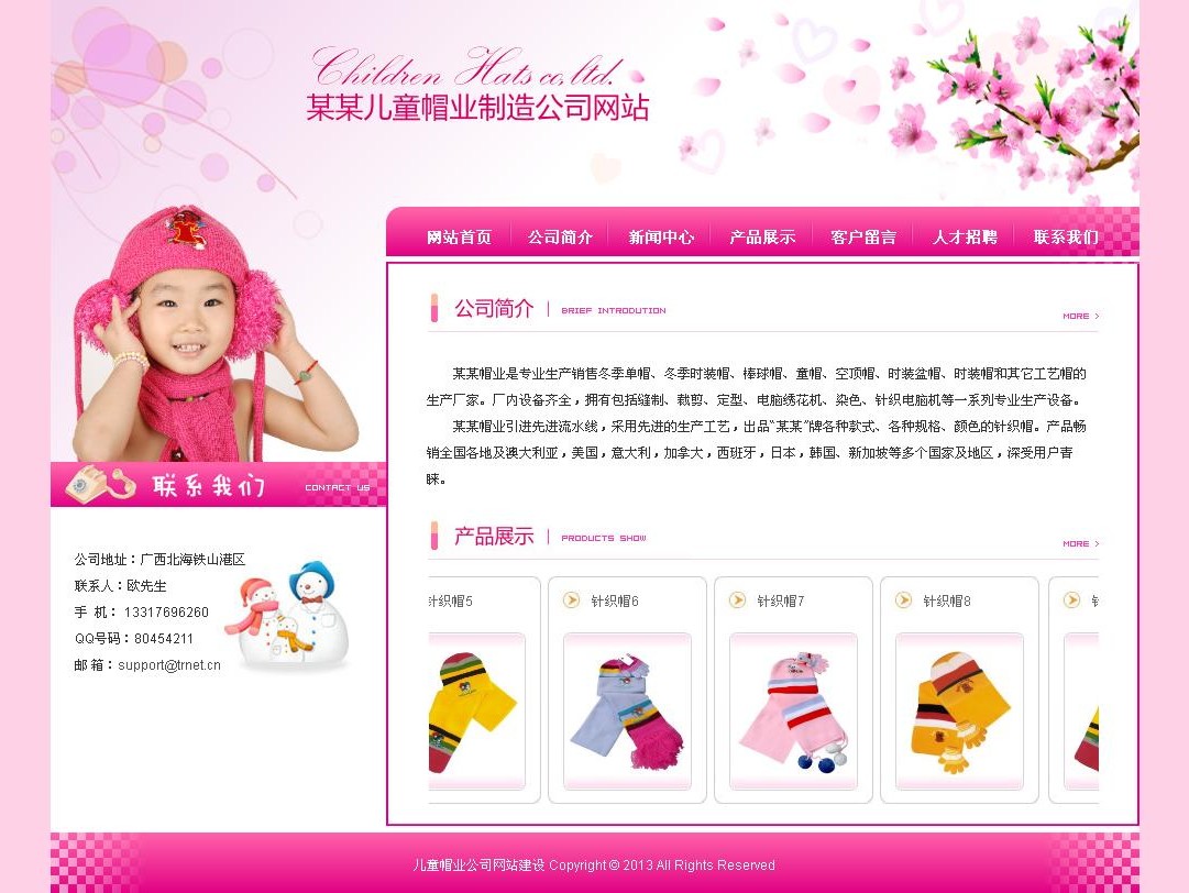 兒童帽業(yè)公司網(wǎng)站模板