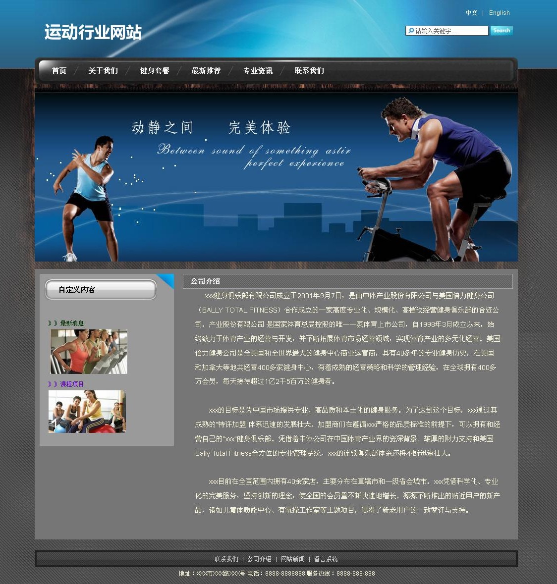 xxx健身俱樂部有限公司成立于2001年9月7日,是由中體產業(yè)股份有限公司與美國倍力健身公司(BALLY TOTAL FITNESS) 合作成立的一家高度專業(yè)化、規(guī);、高檔次經營健身俱樂部的合資公司。產業(yè)股份有限公司 是國家體育總局控股的唯一一家體育上市公司,自1998年3月成 立以來,始終致力于體育產業(yè)的經營與開發(fā),并不斷拓展體育市場經營領域,實現(xiàn)體育產業(yè)的多元化經營。美國倍力健身公司是全美國和全世界最大的健身中心商業(yè) 運營商,具有40多年的專業(yè)健身歷史,在美國和加拿大等地共經營400多家健身中心,有著成熟的經營策略和科學的管理經驗,在全球擁有400多萬會員,每 天接待超過1億2千5百萬的健身者。